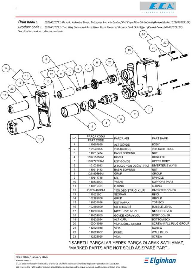 Eca Altın Görünüm Ankastre Banyo/Duş 2 Yolu Sıva Altı 102166207A1