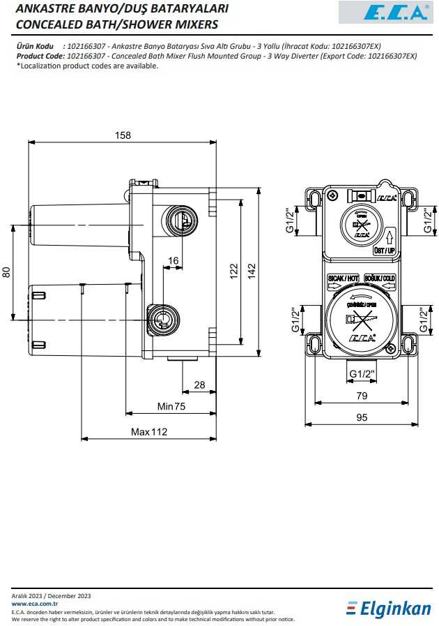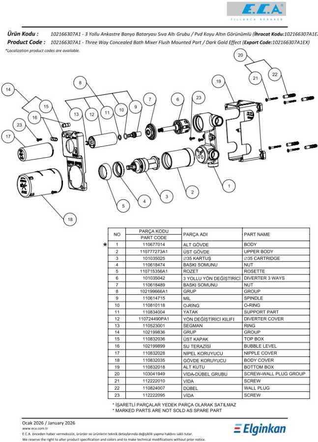 Eca Altın Görünüm Ankastre Banyo/Duş 3 Yolu Sıva Altı 102166307A1