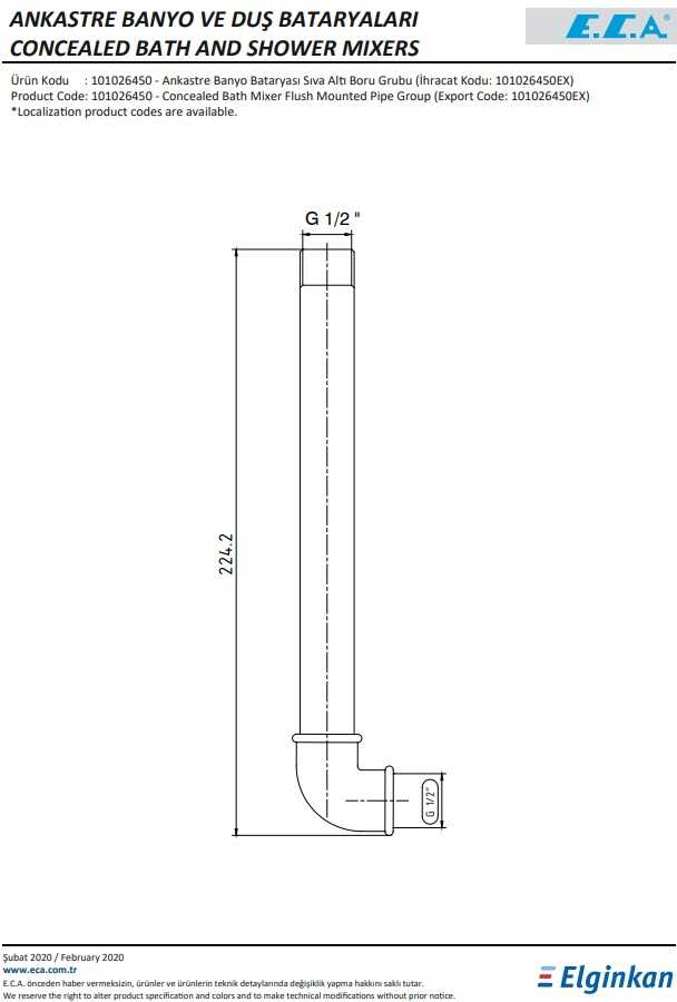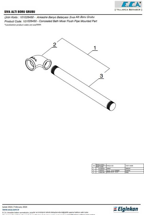 Eca Ankastre Banyo Bataryası Sıva Altı Boru Grubu G1/2" 101026450