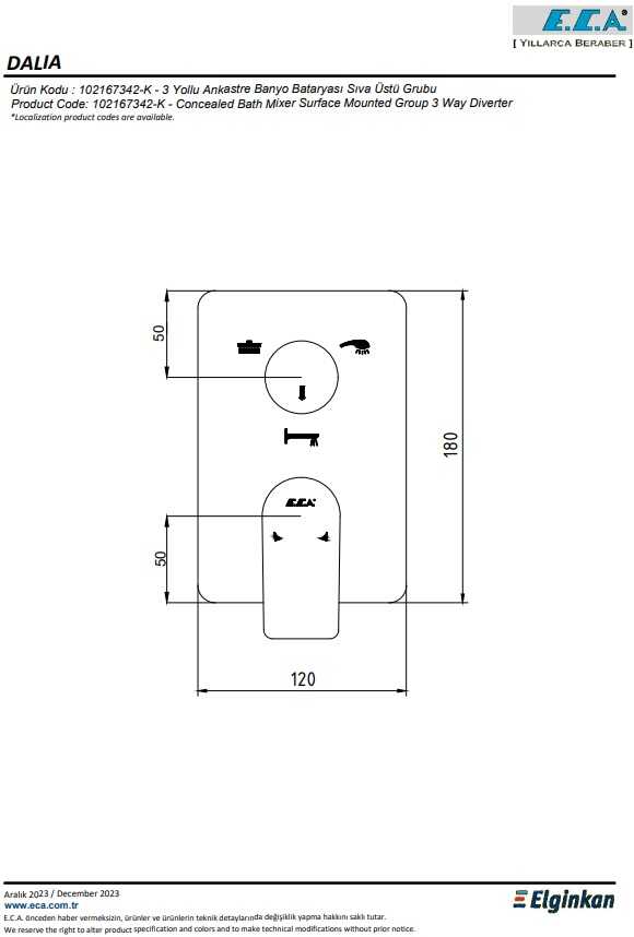 102166307 kodlu sıva altı grubu ayrıca alınmalıdır.- Renk : Krom