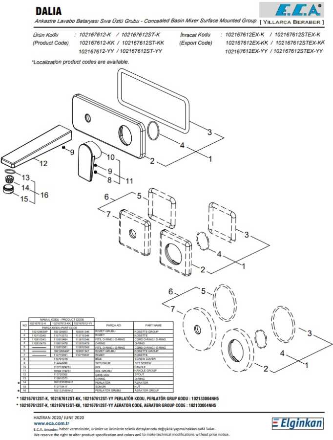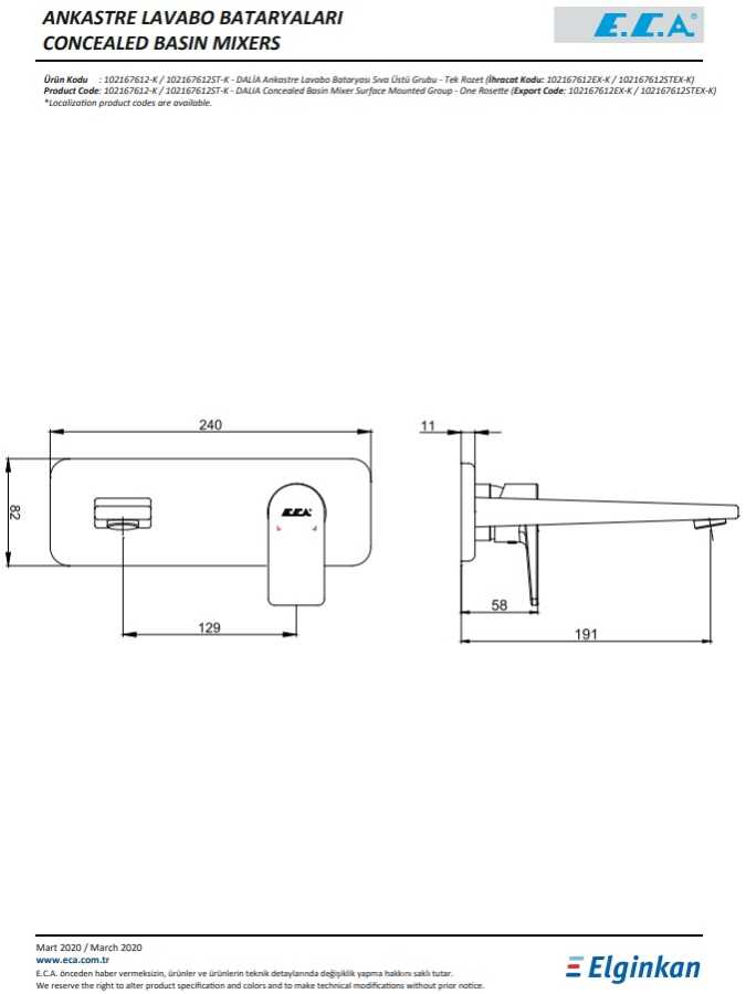 Farklı rozet alternatifleri mevcuttur Çıkış ucu uzunluğu 191 mm’dir 3 bar basınçta su akış miktarı dakikada maksimum 7,5 lt 102166601 kodlu sıva altı grubu ayrıca alınmalıdır