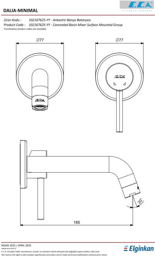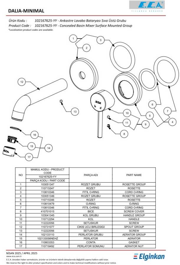 Kireç kırıcılı perlatör Çıkış ucu uzunluğu 185 mm 102166601 kodlu sıva altı grubu ayrıca alınmalıdır 3 bar basınçta su akış miktarı dakikada maksimum 7,5 L
