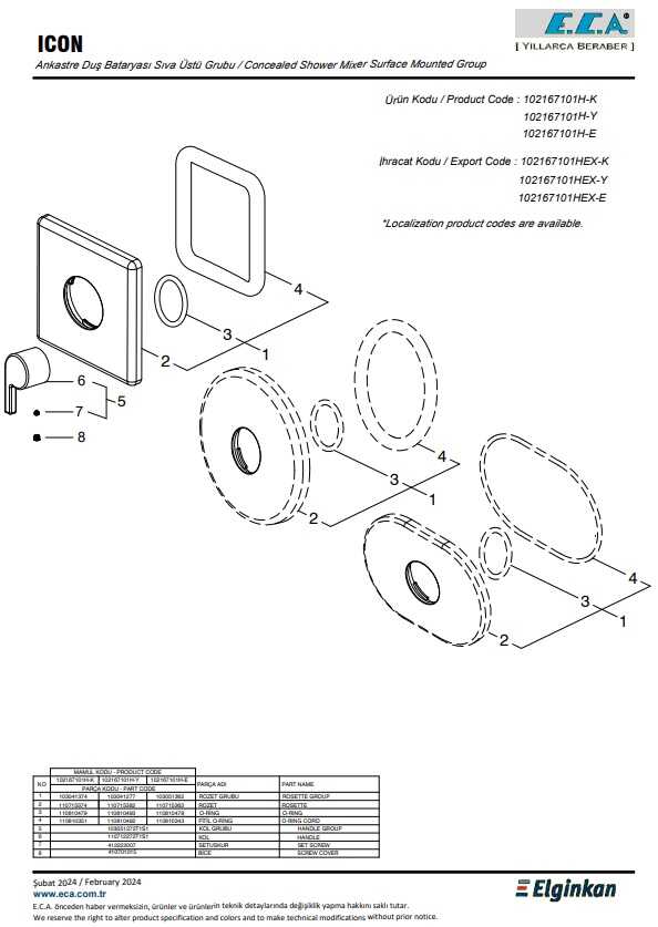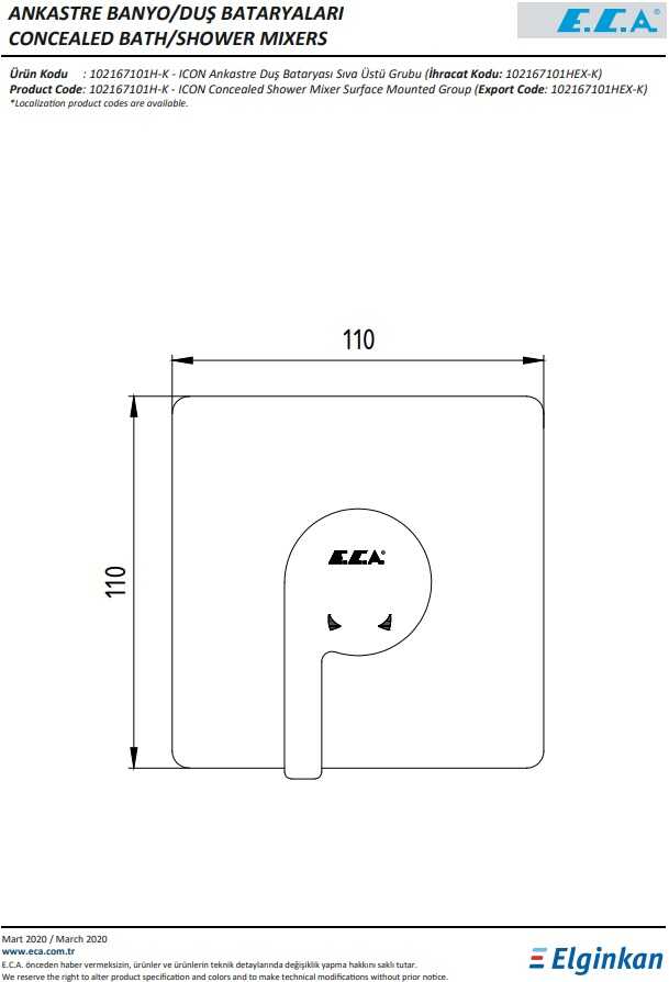 İnovatif E.C.A. Hygiene Plus kaplama Köşeli, yuvarlak ve elips olmak üzere 3 tip rozet alternatifi mevcuttur 102166102 kodlu sıva altı grubu ayrıca alınmalıdır