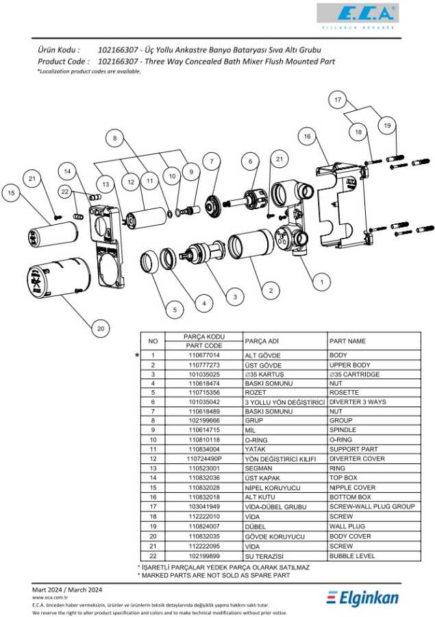 Ankastre Banyo Bataryası Sıva Altı Grubu - 3 Yollu
