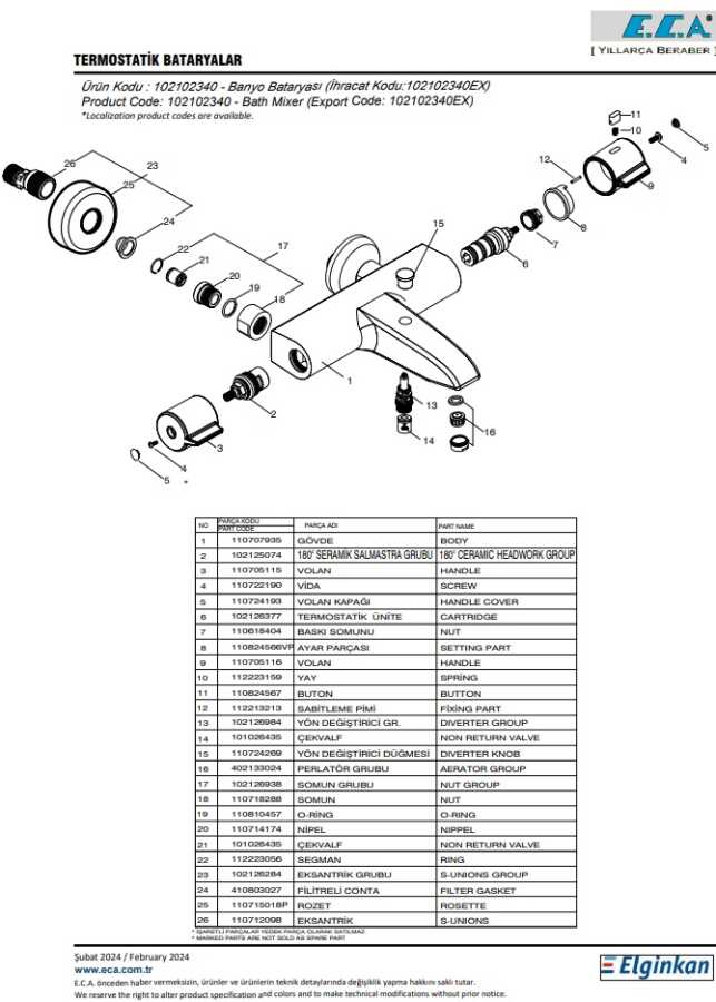 Duş ucu akışı ekseni 180 mm’dir Duş çıkış ekseni 122 mm’dir Üst takım bağlantısı G 1/2" dir 20 ºC – 50 °C kontrol aralığı 180° - G 1/2" seramik salmastralıdır Soğuk su kesildiğinde sıcak suyu da keserek, kullanım suyu sıcaklığının tehlikeli olabilecek dereceye kadar yükselme riski önlenmiş olur Yurtiçi ücretsiz montaj hizmeti verilmektedir