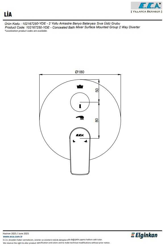 Duş başlığı ve el duşu markalamalı 2 yollu özel yön değiştirici (Markalama alternatifleri mevcuttur) Köşeli, yuvarlak ve elips olmak üzere 3 tip rozet alternatifi mevcuttur 102166207 kodlu sıva altı grubu ayrıca alınmalıdır