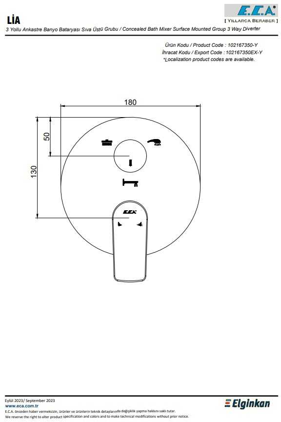 Duş başlığı, el duşu ve çıkış ucu markalamalı 3 yollu özel yön değiştirici Köşeli, yuvarlak ve elips olmak üzere 3 tip rozet alternatifi mevcuttur 102166307 kodlu sıva altı grubu ayrıca alınmalıdır.