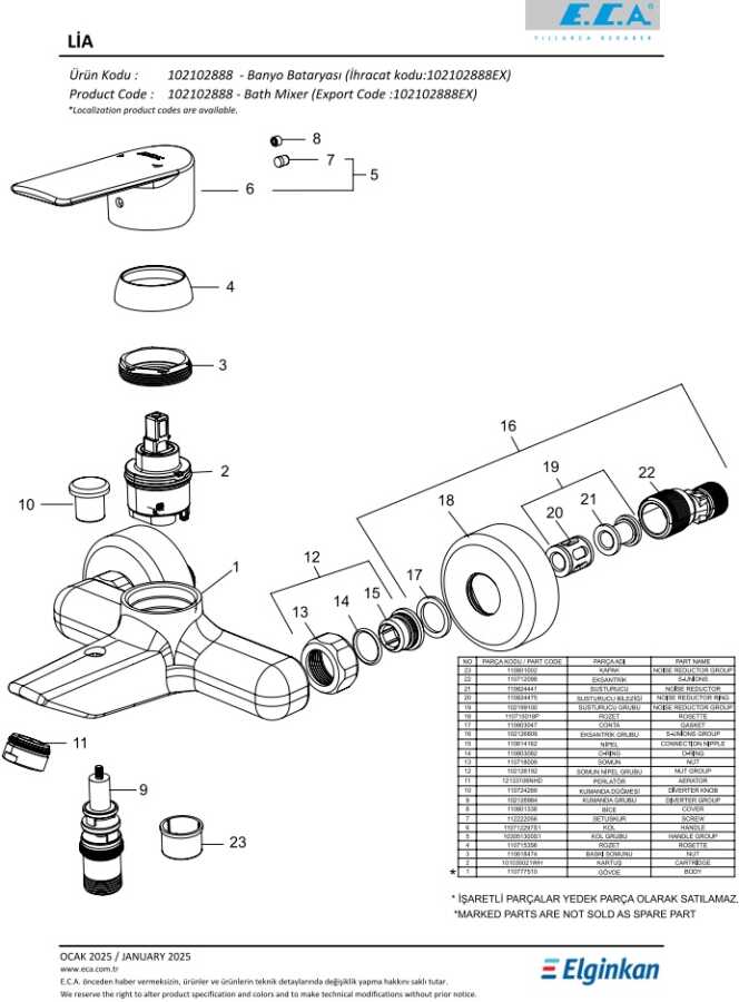 Çıkış ucu uzunluğu 150 mm'dir Üst takım bağlantısı G 1/2" dir Kilitlemeli yön değiştirici Kireç kırıcılı perlatör
