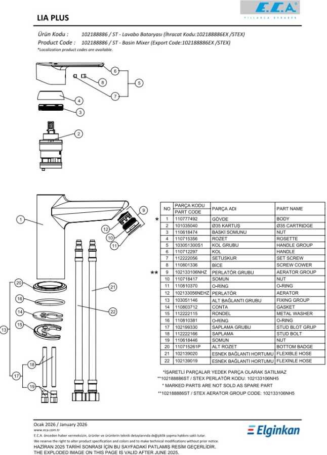 Lia Plus Lavabo Bataryası