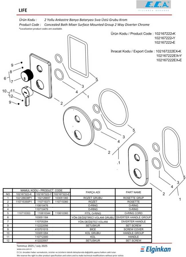 Duş başlığı ve el duşu markalamalı 2 yollu özel yön değiştirici Krom kaplamalı ürünler için 102166207, Mat Siyah kaplamalı ürünler için 102166207C1 kodlu sıva altı ayrıca alınmalıdır.