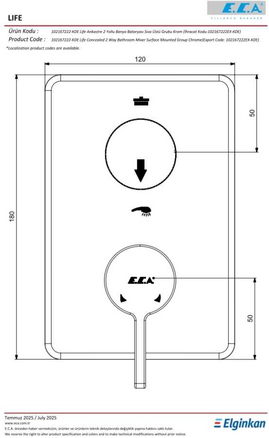 Life Ankastre Banyo/Duş Bataryası Sıva Üstü Grubu - 2 Yollu