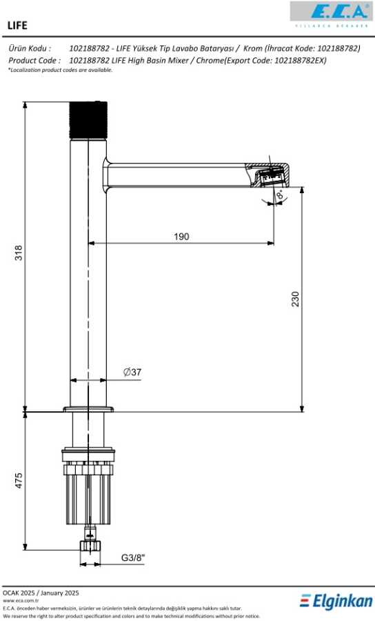 Life Yüksek Tip Lavabo Bataryası