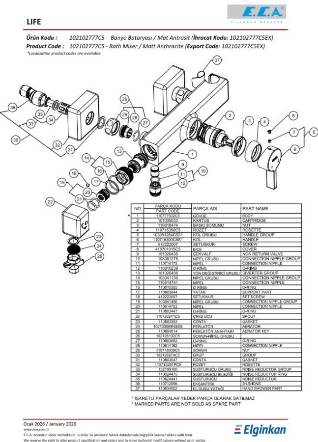 Perlatörün bulunduğu kısmın döndürülmesi ile su akışını duşa veren özel mekanizmalı yön değiştirici- Renk : Mat Antrasit