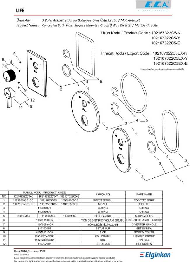 102166307C5 Mat Antrasit kodlu sıva altı grubu ayrıca alınmalıdır.
