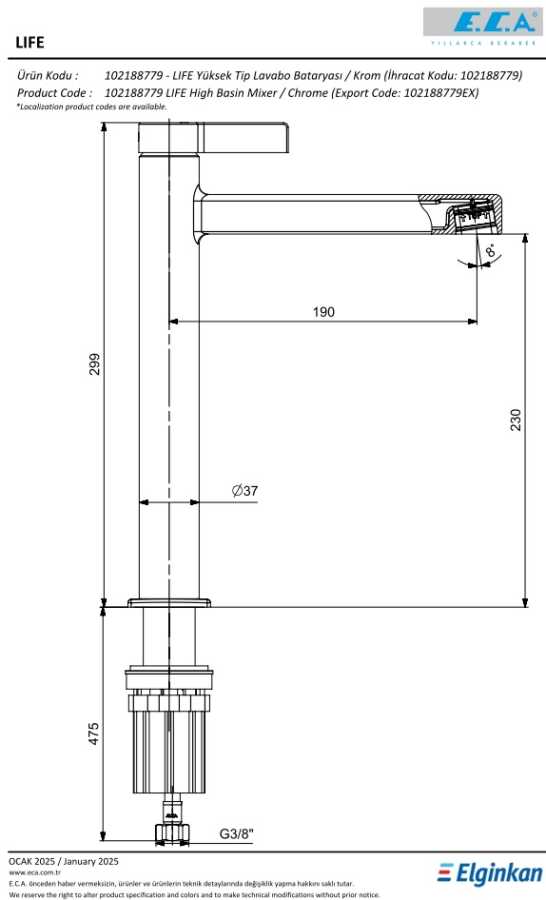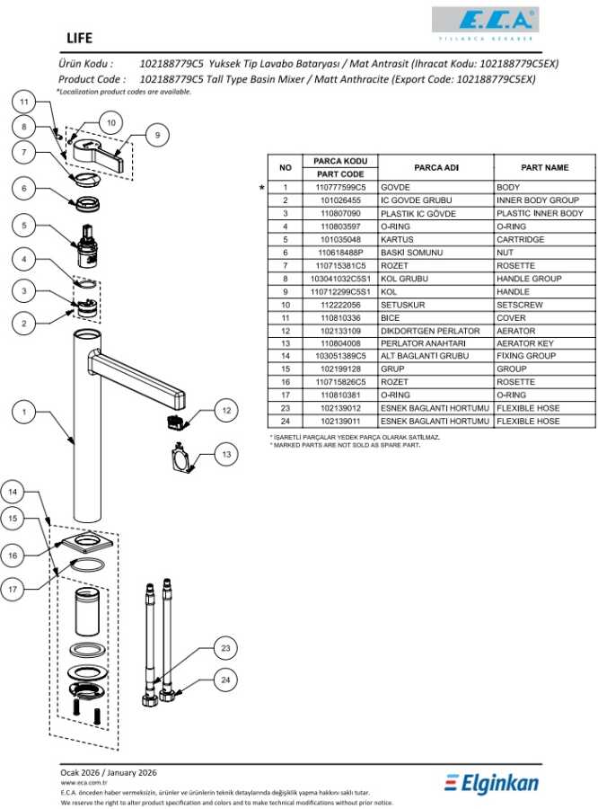 Life Yüksek Tip Lavabo Bataryası - Mat Antrasit
