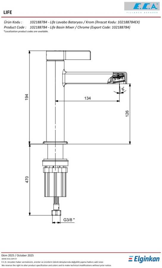 3 bar basınçta su akış miktarı 7 l/dk- Renk : Mat Siyah