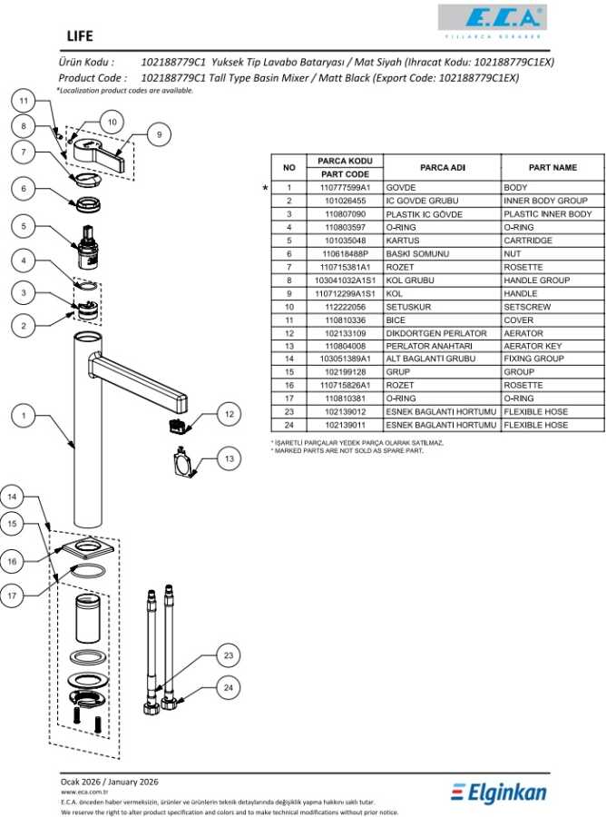 Life Yüksek Tip Lavabo Bataryası - Mat Siyah