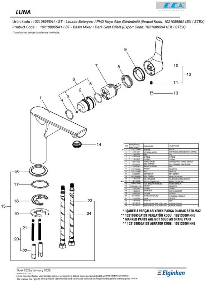 Luna Lavabo Bataryası - Altın Görünümlü