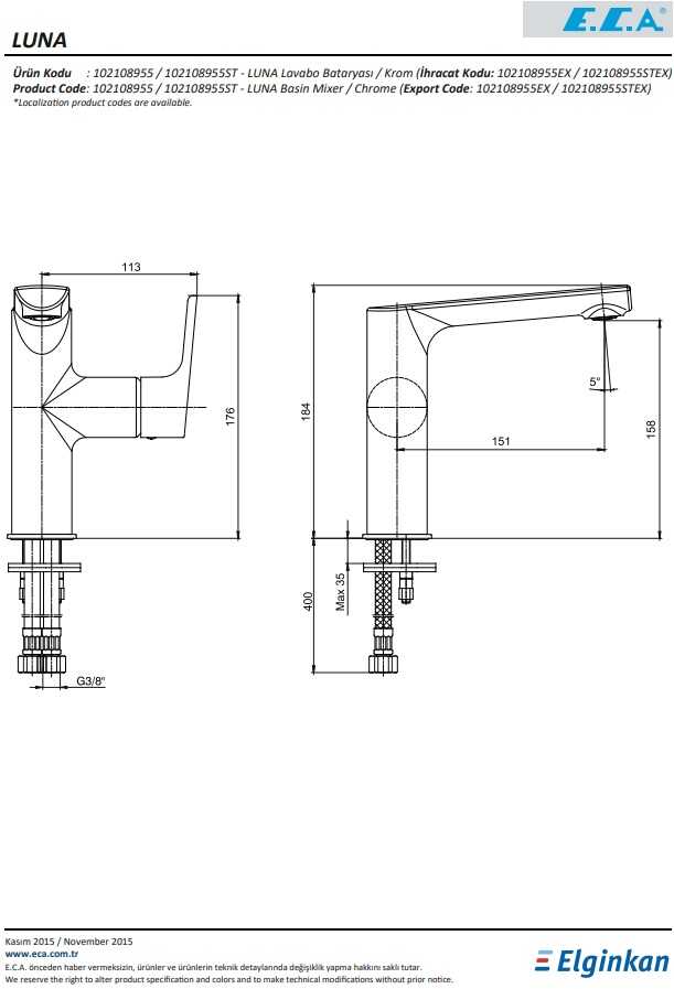 - Çıkış Ucu Yüksekliği : 158