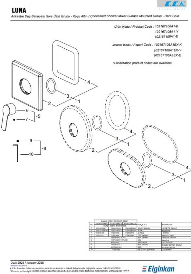 102166102A1 Altın Görünümlü kodlu sıva altı grubu ayrıca alınmalıdır.- Renk : Altın Boyalı
