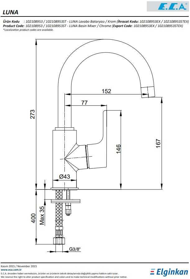 3 bar basınçta su akış miktarı 7,9 l/dk- Renk : Altın Boyalı