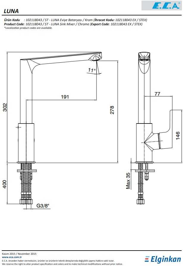 Çıkış Ucu Yüksekliği : 278Ürün Etiketleri