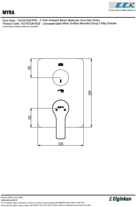 Duş başlığı ve el duşu markalamalı 2 yollu özel yön değiştirici (Markalama alternatifleri mevcuttur) Köşeli, yuvarlak ve elips olmak üzere 3 tip rozet alternatifi mevcuttur 102166207 kodlu sıva altı grubu ayrıca alınmalıdır