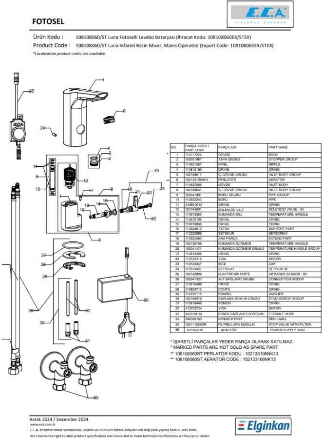 Çift su girişlidir Çıkış ucu uzunluğu 100 mm’dir Çıkış ucu yüksekliği 130 mm’dir 220 V güç kaynağı ile çalışır Elektrik kesilmesinde güç kaynağı içindeki şarjlı pille geçici süre çalışmaya devam eder Filtreli ara musluklar ürünle birlikte verilmektedir Kireç temizleme sistemli perlatör 3 bar basınçta su akış miktarı dakikada 5 lt Yurtiçi ücretsiz montaj hizmeti verilmektedir
