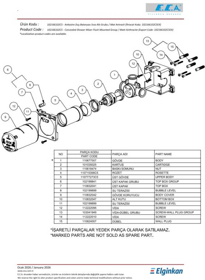 Eca Mat Antrasit Ankastre Duş Batarya Sıva Altı Grubu 102166102C5
