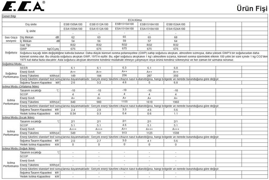 444 03 22 Eca Müşteri Hizmetlerinden 4 Metreye Kadar Ücretsiz Servis Kaydı AçtırabilirsinizSipariş Öncesi Servis Geliş Tarihi ve Montaj Hakkında Bilgi Alınması Önemle Rica OlunurOdanıza Klima Kapasitesi Hesaplama Yöntemi : m³ x 40 x 3,41 = BtuDoğayı ve İnsanı Düşünen E.C.A. Klimalar- 9.000 - 12.000 - 15.000 - 18.000 - 24.000 BTU/h Kapasiteler
