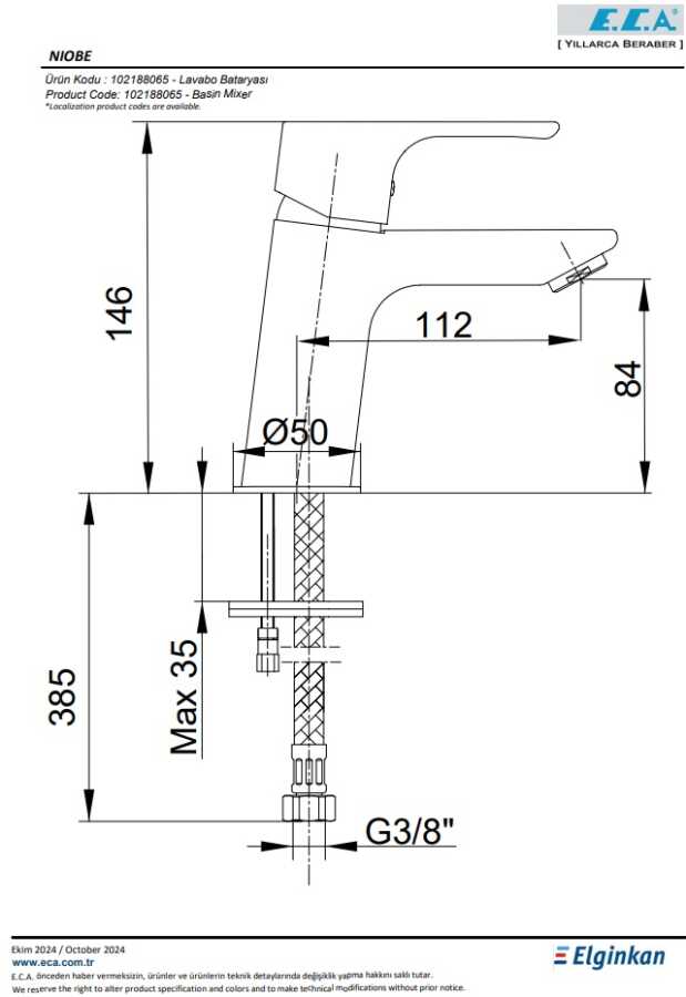 Çıkış ucu uzunluğu 112 mm. Çıkış ucu yüksekliği 84 mm. Kireç kırıcılı perlatör 3 bar basınçta su akış miktarı dakikada maksimum 8 L Kumandalı ürün alternatifi bulunmaktadır. Çift kademeli soğukta açılabilir özel kartuş. 3 bar basınçta su akış miktarı; 1. kademede dakikada 3,7 L, 2. kademede dakikada 6,8 Lt.