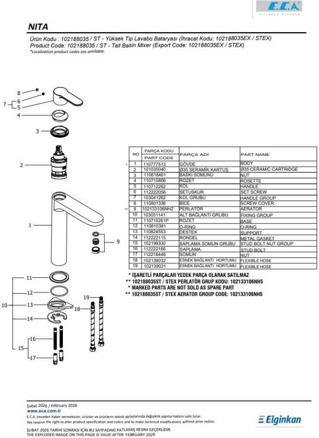 Nita Yüksek Tip Lavabo Bataryası