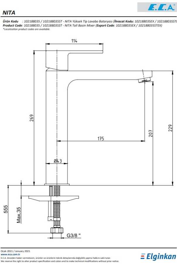 Çıkış ucu yüksekliği 207 mm’dir