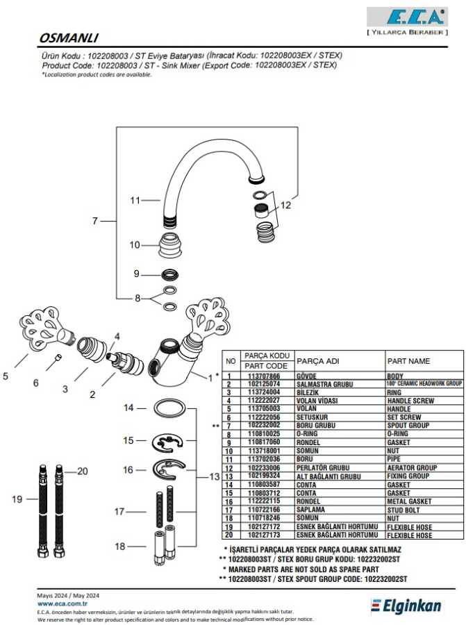 Çıkış ucu uzunluğu 188 mm´dir Çıkış ucu yükseliği 191 mm'dir 180° seramik salmastralı Ürün süzgeçlidir 360° döner çıkış uçlu