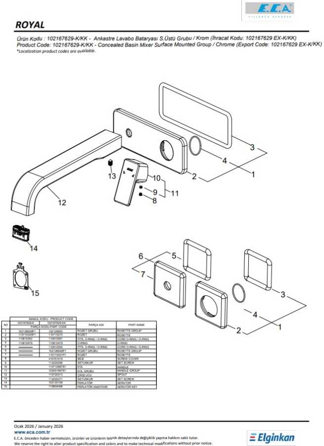 102166601 kodlu sıva altı grubu ayrıca alınmalıdır.