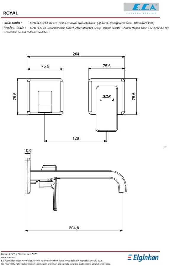 Royal Ankastre Lavabo Bataryası Sıva Üstü Grubu - Çift Rozet