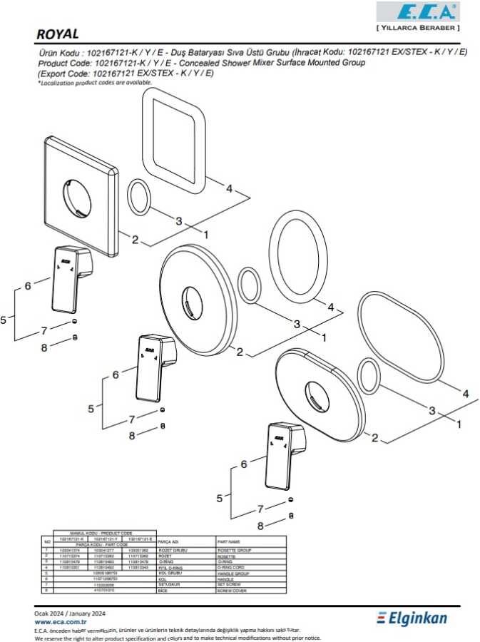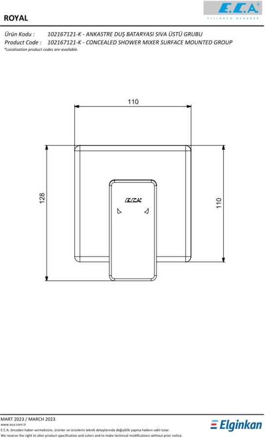 Köşeli, yuvarlak ve elips olmak üzere 3 tip rozet alternatifi mevcuttur 102166102 kodlu sıva altı grubu ayrıca alınmalıdır