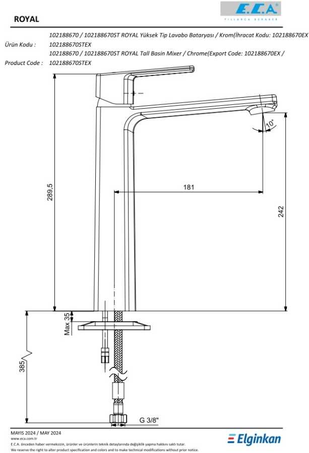 Çıkış ucu uzunluğu 181 mm'dir Çıkış ucu yüksekliği 242 mm'dir Kireç kırıcılı gizli perlatöre sahiptir- Renk : Krom
