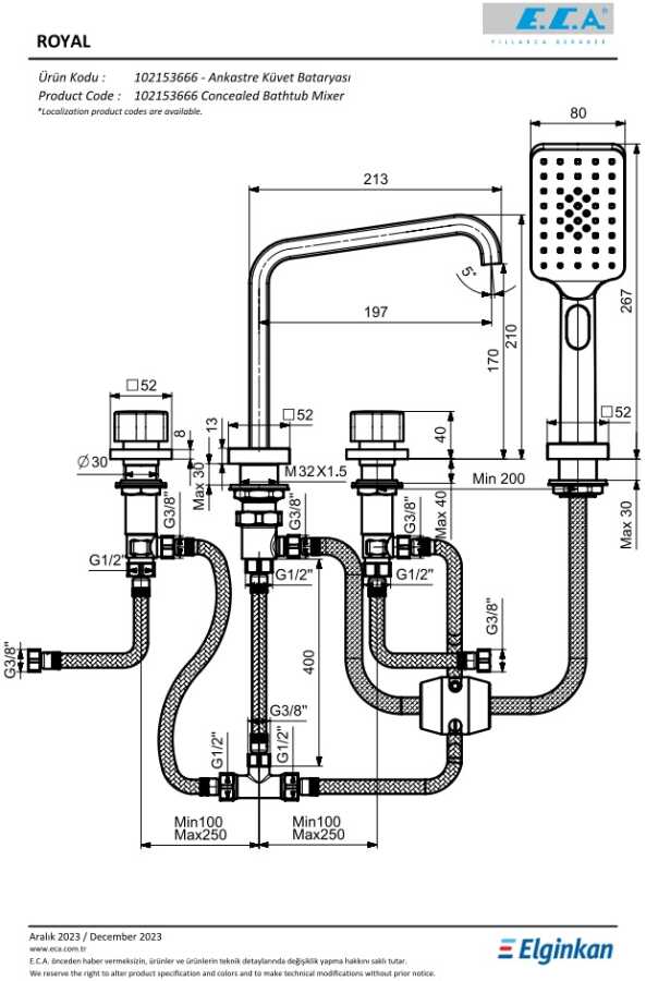 Tiera Plus 3F el duşu kullanılmaktadır.