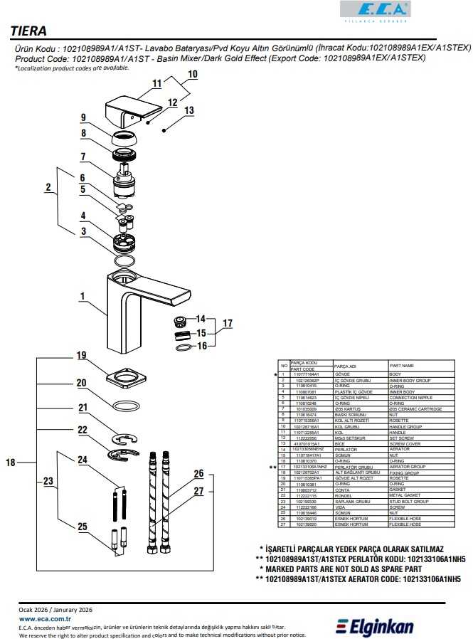 Tiera Lavabo Bataryası - Altın Görünümlü