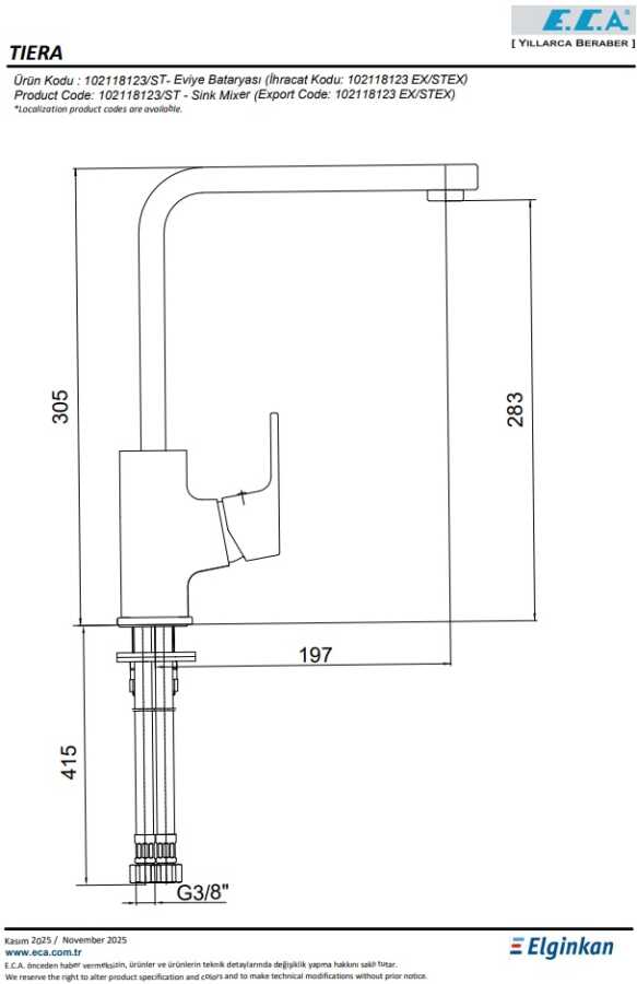 - Çıkış Ucu Yüksekliği : 283