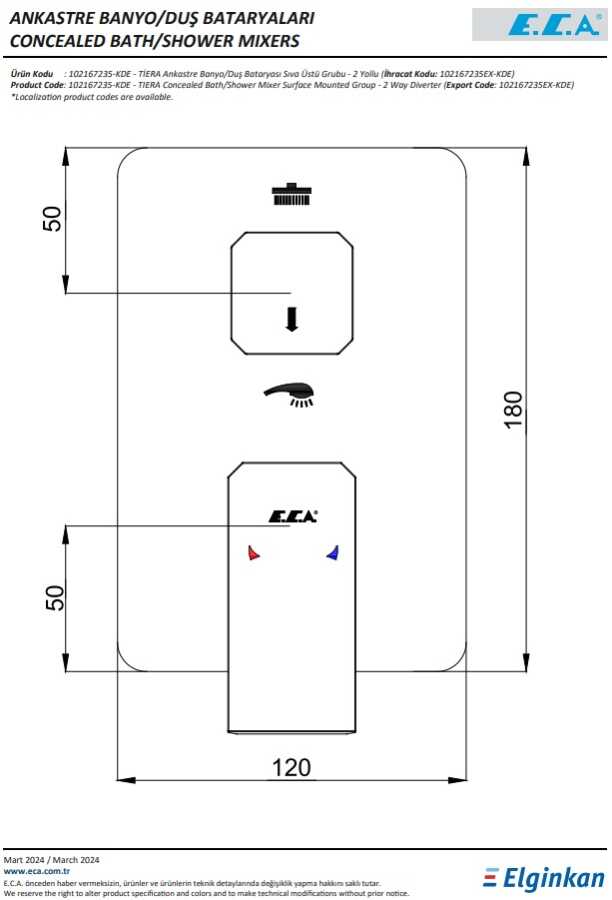 Duş başlığı ve el duşu markalamalı 2 yollu özel yön değiştirici (Markalama alternatifleri mevcuttur) Köşeli, yuvarlak ve elips olmak üzere 3 tip rozet alternatifi mevcuttur 102166207 kodlu sıva altı grubu ayrıca alınmalıdır
