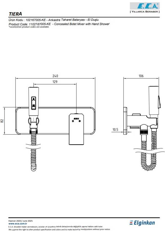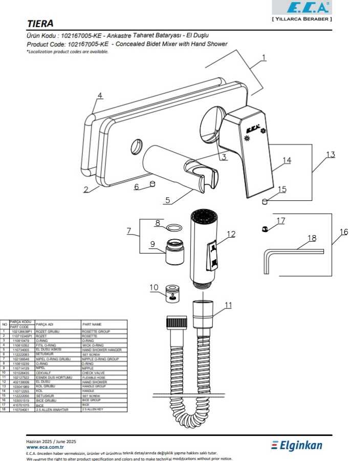 102166601 kodlu sıva altı grubu ayrıca alınmalıdır.Sprey ve perlatör akışlı çift fonksiyonlu el duşu 1 m burkulmaz el duşu spirali
