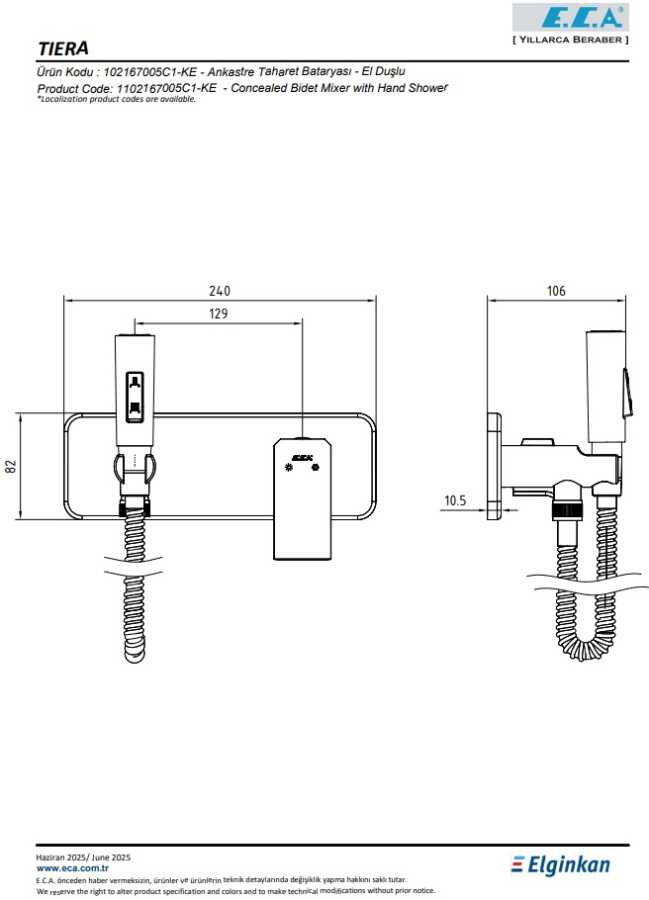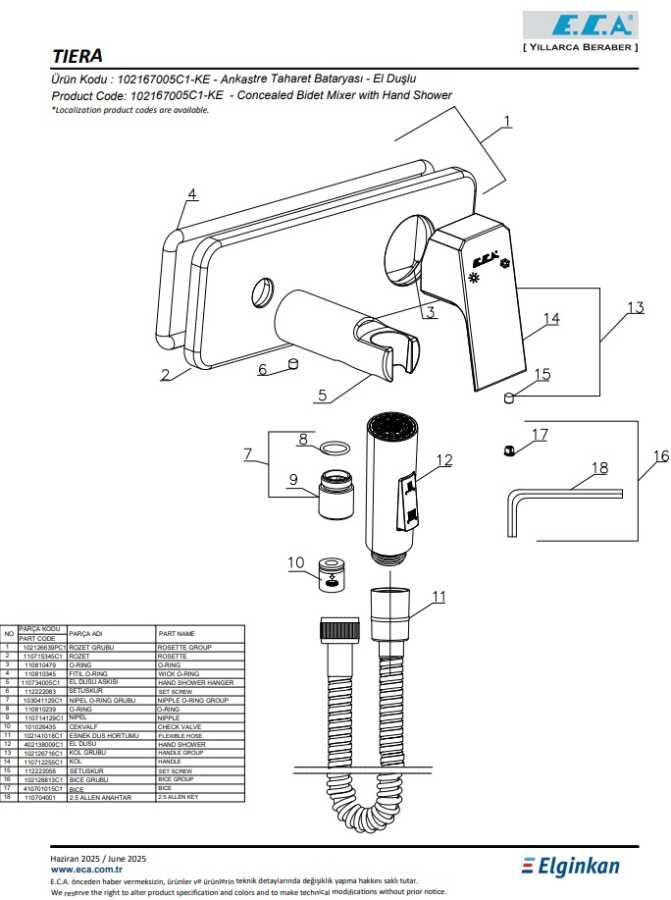 102166601C1 kodlu sıva altı grubu ayrıca alınmalıdır Sprey ve perlatör akışlı çift fonksiyonlu el duşu 1 m burkulmaz el duşu spirali